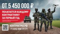 В Подмосковье увеличен размер единовременной выплаты после заключения контракта на военную службу. Теперь каждый доброволец может рассчитывать на региональную специальную выплату в размере 2 600 000 рублей и федеральную выплату в размере 400 000 рублей. А всего за первый год службы контрактник получит - с учетом выплат правительства Московской области и Министерства обороны РФ – от 5 450 000 рублей.