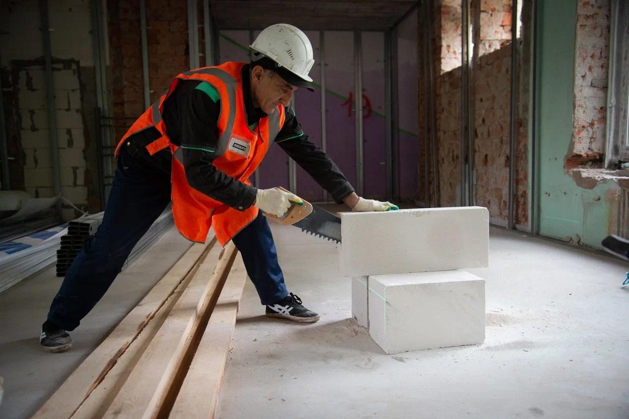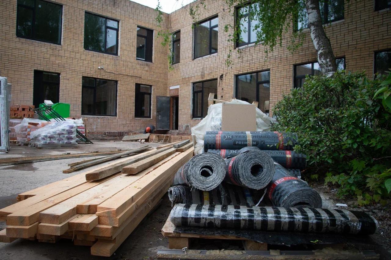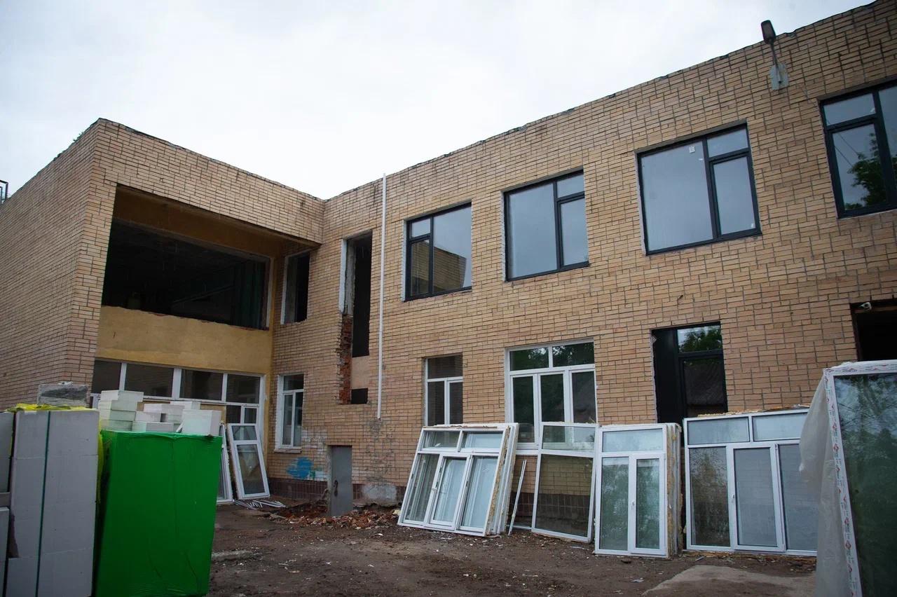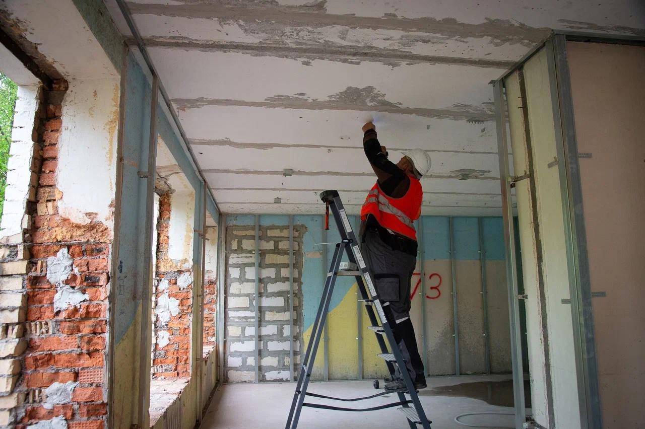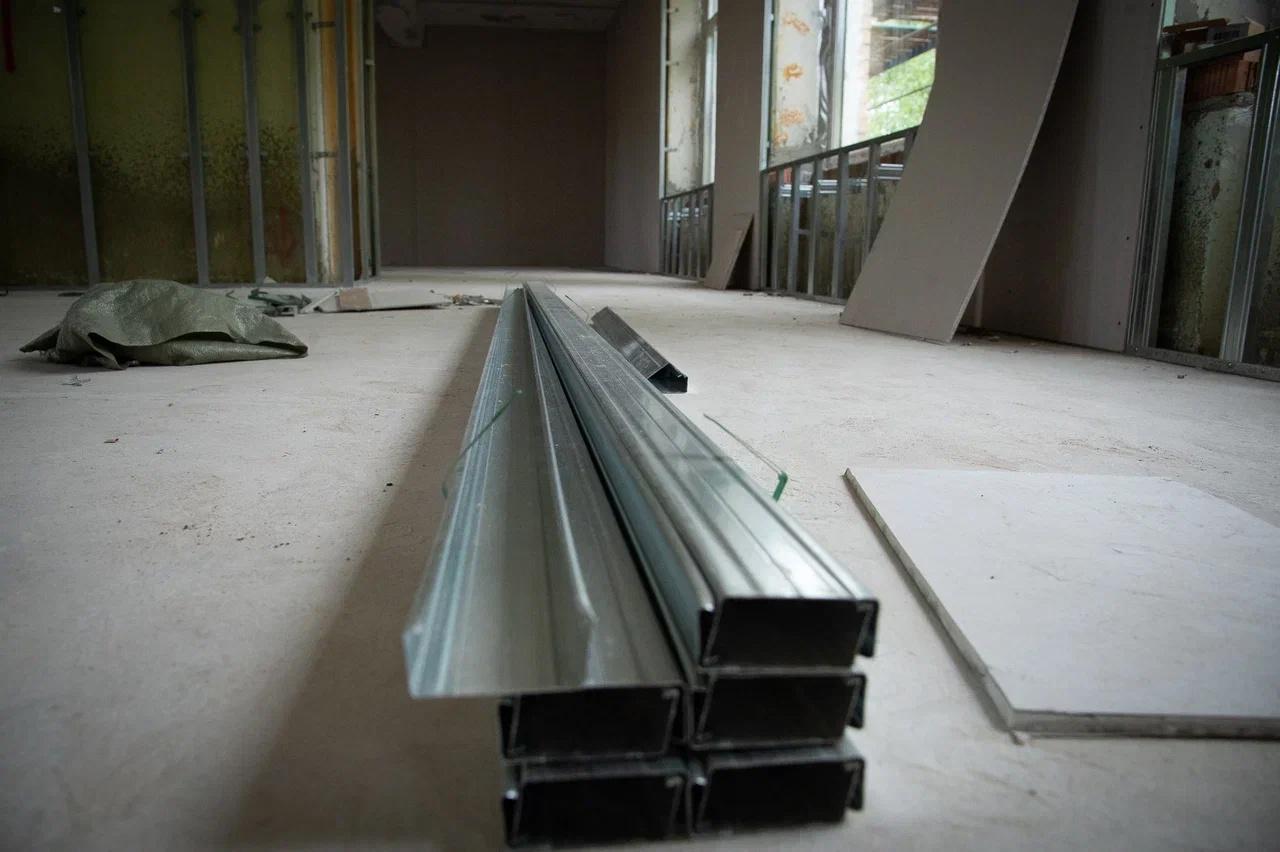 Сейчас строители уже выполнили 45% всех задач по этому объекту. Специалисты уже полностью отремонтировали крышу. Сейчас идут общестроительные работы и подготовка интерьеров к отделке. Рабочие обновляют входные группы, зашивают стены санузлов и коридоров гипсокартоном, прокладывают трубы отопления и водоснабжения, ставят новые окна, проводят линии освещения, выполняют малярные и плиточные работы. На объекте трудятся 30 человек.