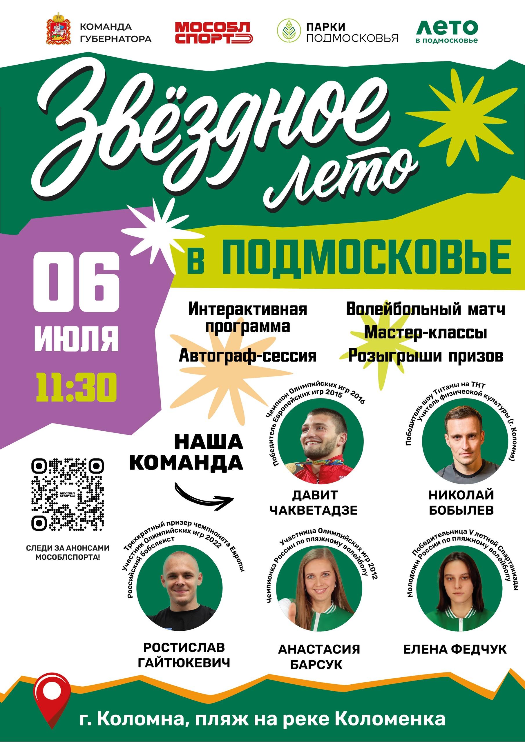 Второй летний месяц в регионе даст старт уникальному губернаторскому проекту «Звездное лето в Подмосковье». Жителей и гостей ждут бесплатные тренировки и мастер-классы на пляжах. Участниками проекта станут титулованные спортсмены, чемпионы и призёры Олимпийских игр, а также известные артисты и участники телепроекта «Титаны».
