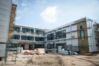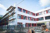 В школе № 14 продолжается капитальный ремонт. На объекте ежедневно трудятся более 90 человек. Строители завершают фасадные работы, параллельно осуществляют монтаж инженерных коммуникаций и занимаются чистовой отделкой помещений.