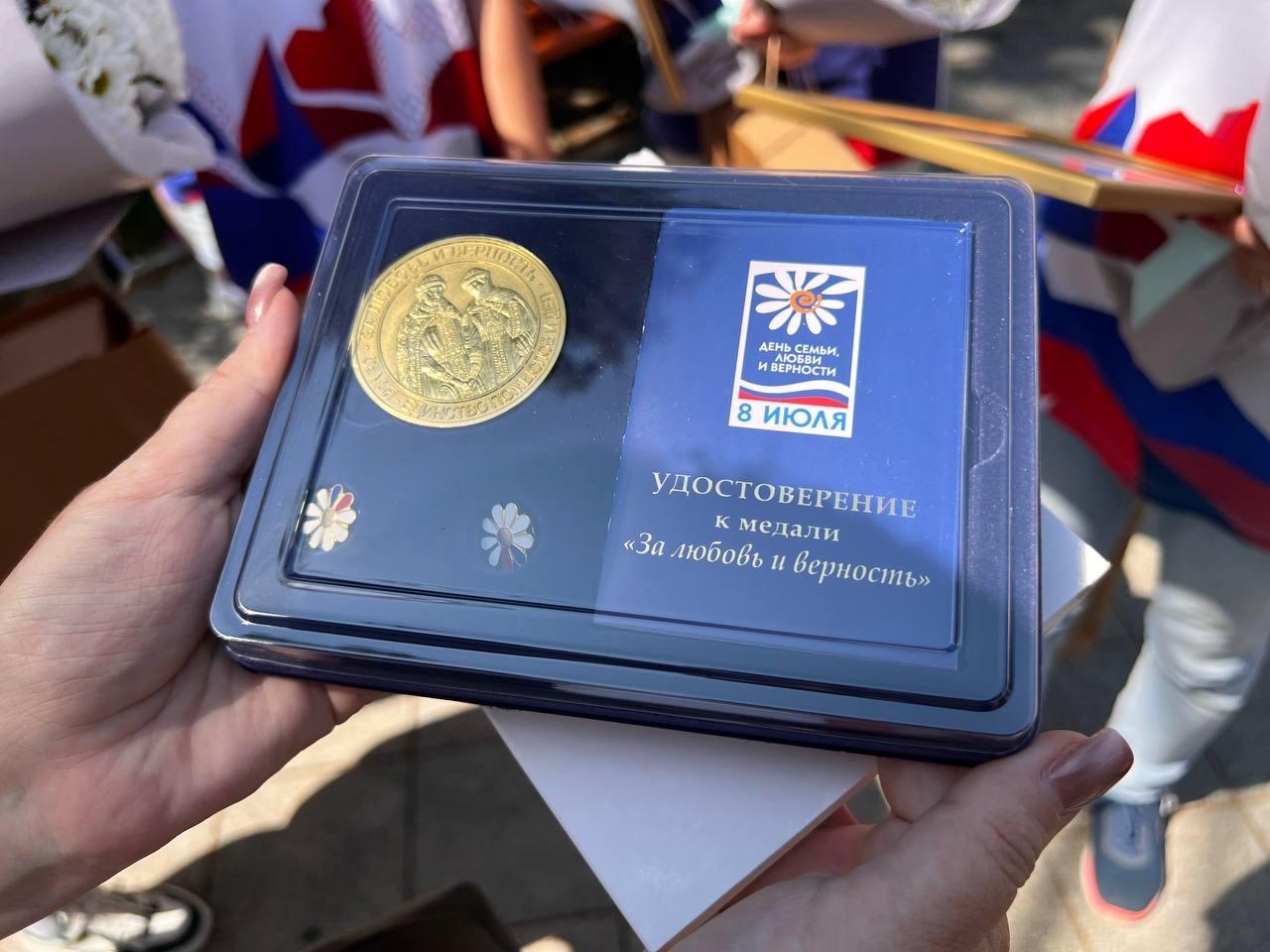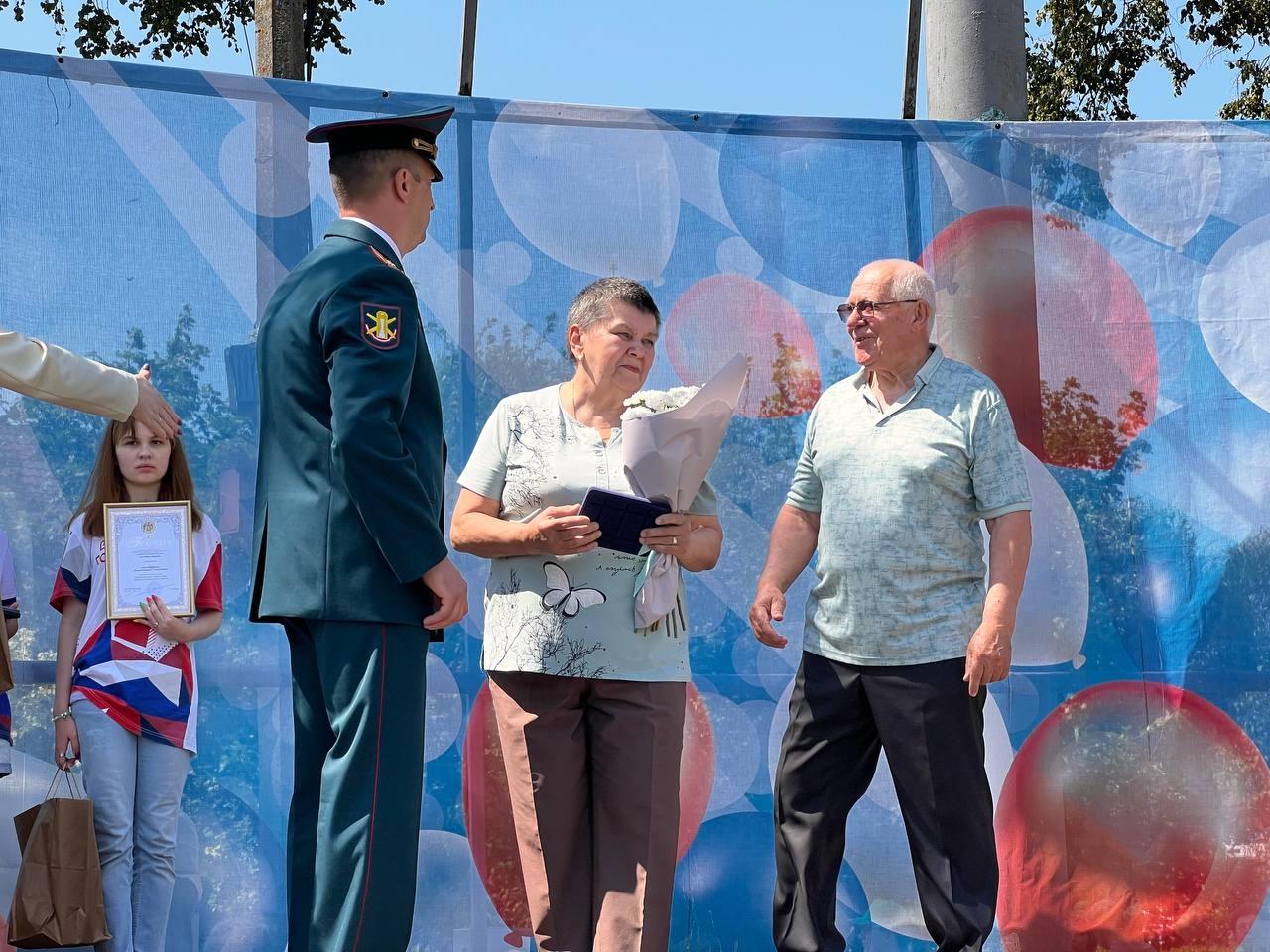 В День семьи, любви и верности на фестивале «Ромашковое счастье» руководитель коломенского отделения Ассоциации ветеранов СВО Подмосковья Алексей Каратеев и начальник управления образования администрации Городского округа Коломна Янина Щеглова вручили награду Николаю Александровичу и Асие Абдрашитовне. За крепость союза и сохранение традиционных ценностей они были удостоены почетной грамоты и медали «За любовь и верность».