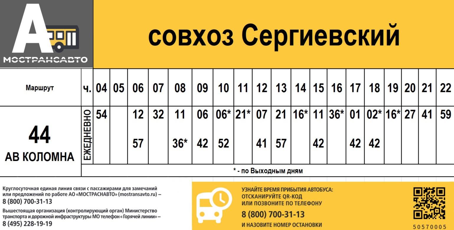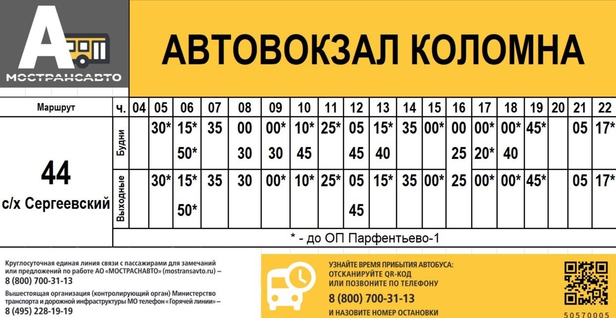 Подготовлено новое расписание маршрута № 44 (Голутвин-Сергиевский) с учетом предложений жителей.