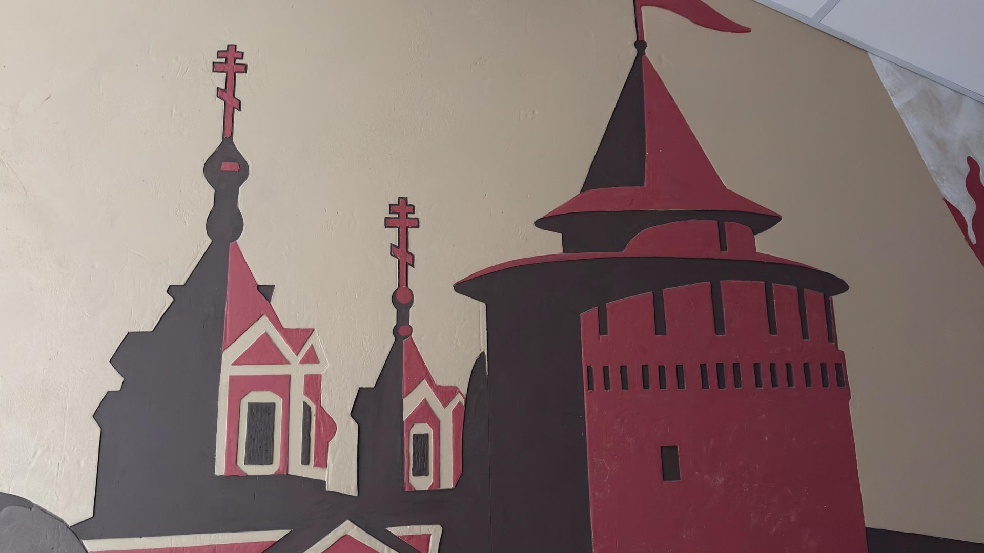 Внутри стены школы украшены изображениями знаменитых достопримечательностей Коломны, которые выполнены мастерами под руководством художника Алексея Шилова.