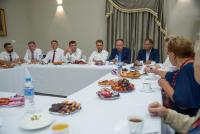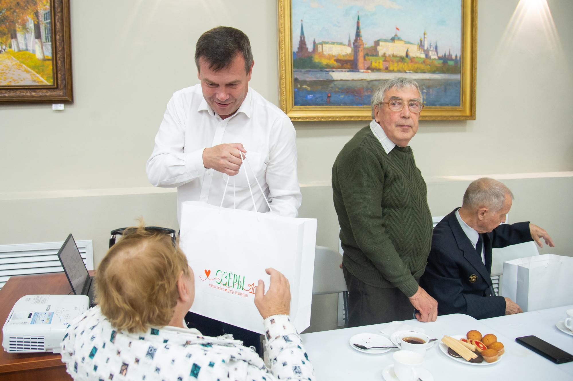 Глава Городского округа Коломна Александр Гречищев вместе с депутатом Госдумы Никитой Чаплиным, председателем Совета депутатов округа Николаем Братушковым в день празднования 100-летия города Озёры встретился с жителями, удостоенными звания «Почетный гражданин». Среди них – заслуженные учителя, медики, работники культуры, промышленности, представители других важных профессий.
