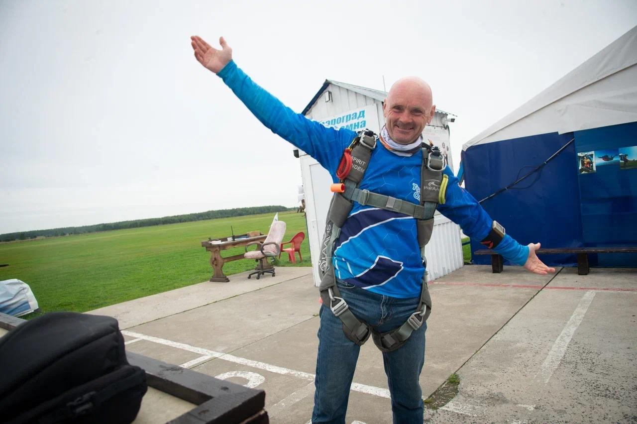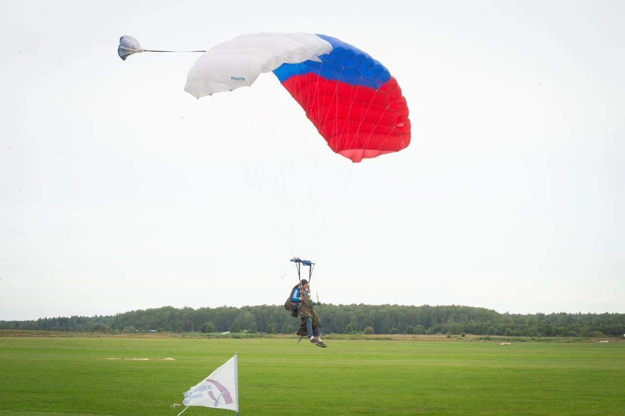 Несмотря на внезапное похолодание последних дней в праздник погодные условия оказались комфортными для парашютиста. Стоит добавить, что для Олега Тощева этот прыжок с флагом стал 44-м.