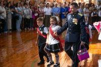 «Мне бы хотелось, чтобы вы, ребята, всегда помнили о семье, семейных ценностях, о том, что вы живете в великой стране России, которая имеет славные культуру и традиции. Не забывайте о них, чтите их и любите свою Родину», - напутствовал озерских школьников руководитель коломенского отделения подмосковной Ассоциации Алексей Каратеев. В этот день он проводил в 1 класс двойняшек Давида и Талиба.