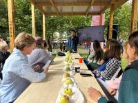 День открылся яркой детской программой: на главной сцене сквера им. В.А. Зайцева состоялся беби-спектакль театра имени Мони Бидони, а в Книжном павильоне дети приняли участие в увлекательном мастер-классе по созданию коллажа вместе с героями известного издательства.