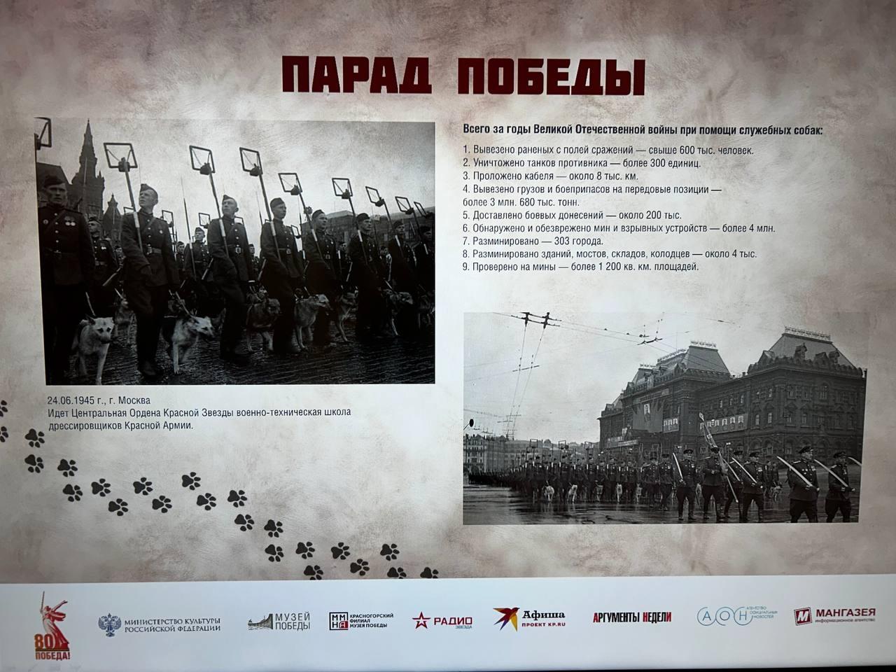Экспозицию в Музее боевой славы дополняют рисунки учащихся Красногорской детской художественной школы, посвященные профессиям собак, и редкие фотодокументы.