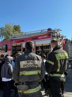 Участниками флешмоба стали шестиклассники гимназии №2 «Квантор» и одиннадцатиклассники гимназии №9. Ребята смогли не только выразить благодарность сотрудникам чрезвычайного ведомства, но и познакомиться с их работой – увидеть изнутри устройство пожарного автомобиля, понять назначение специального оборудования и аварийно-спасательного инструмента.