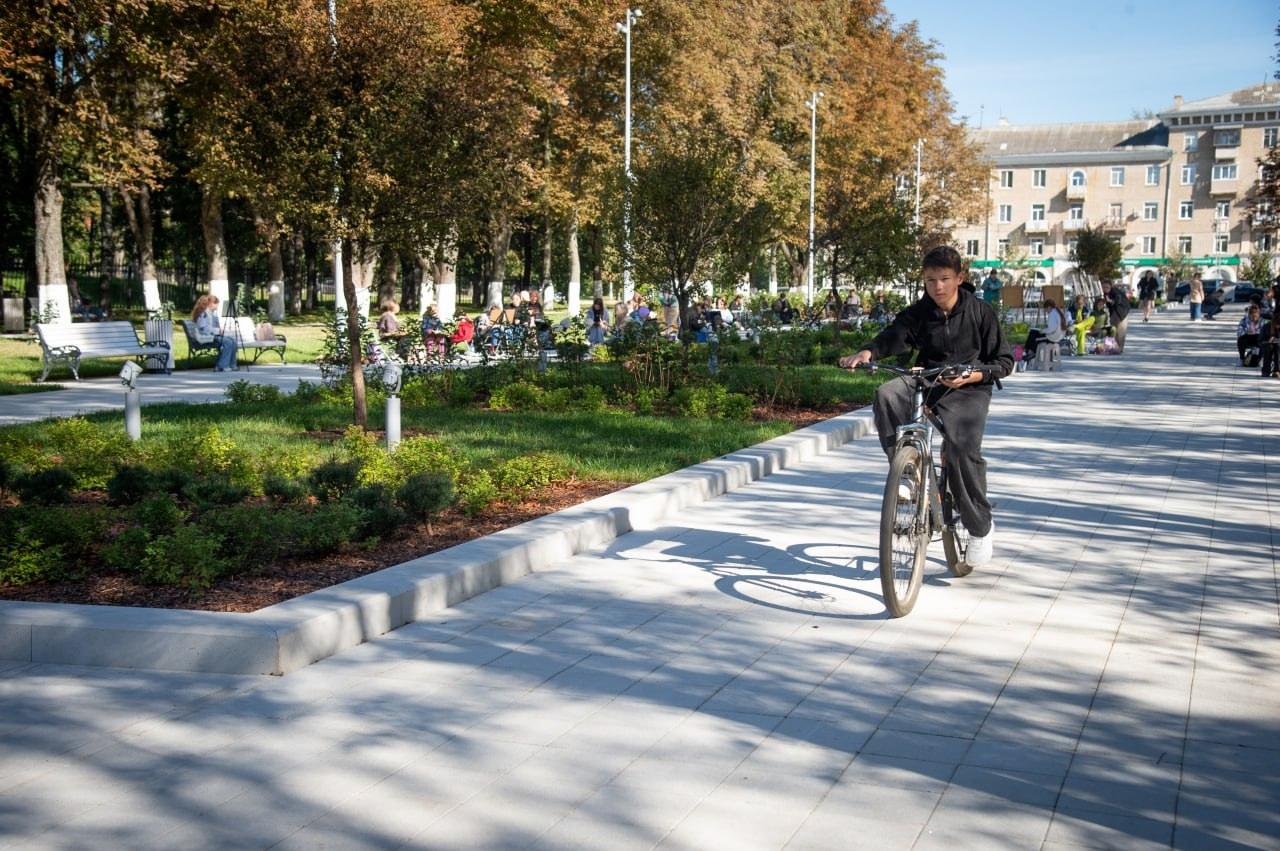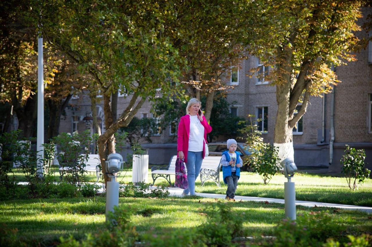 За лето строители положили здесь плитку, обустроили новые цветники, высадили молодые деревья и сделали современное освещение. А совсем скоро на территории появятся беседки с качелями.