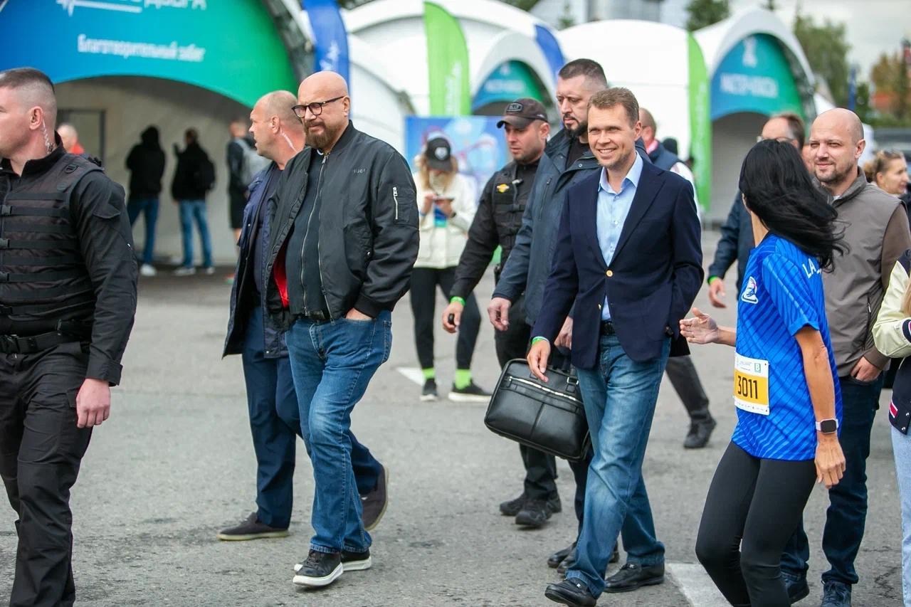 Также участников благотворительного забега напутствовали также министр спорта Московской области Дмитрий Абаренов, депутаты Госдумы Никита Чаплин и Роман Терюшков депутат Мособлдумы Олег Жолобов Чемпион мира по конькобежному спорту Руслан Мурашов.