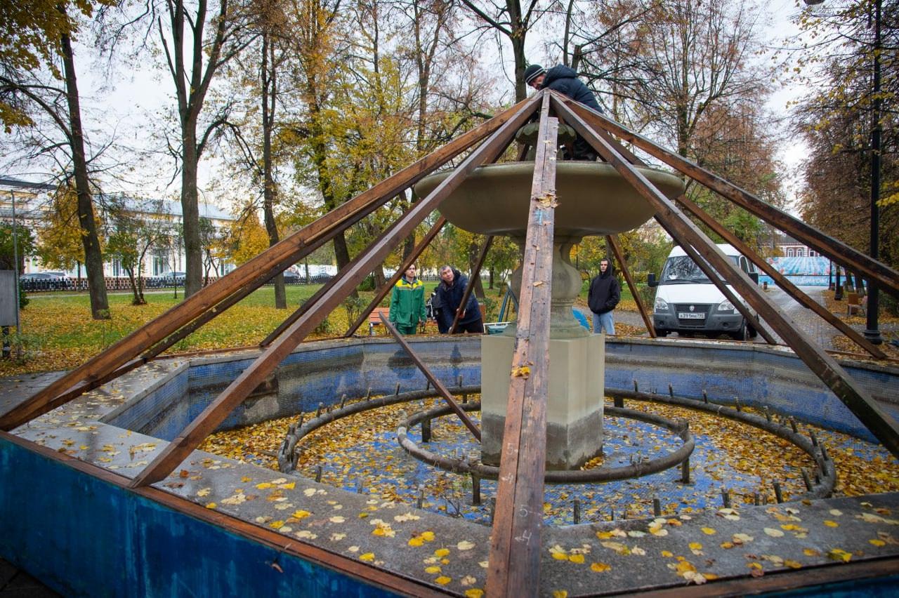 С наступлением первых осенних холодов, начиная с октября месяца, работники МБУ «Спецавтохозяйство» начали проводить традиционные перед наступлением зимы мероприятия по уходу за городскими фонтанами: конструкции моют, демонтируют оборудование и проводят консервацию, чтобы к следующему сезону они снова были готовы радовать жителей.