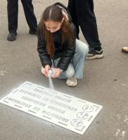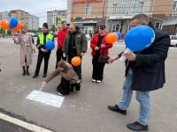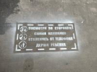 «Сними наушники!», «Посмотри по сторонам!», «Отвлекись от телефона!», «Держи ребенка!» - такие надписи нанесли участники акции краской на асфальт.