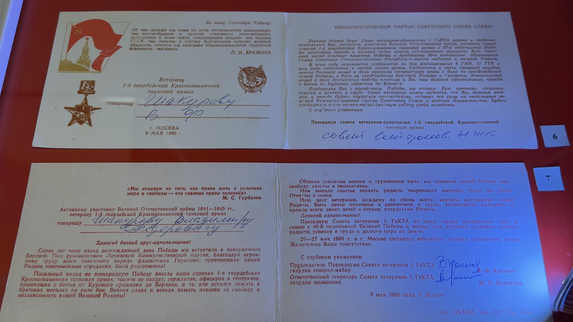 На этой экспозиция можно познакомиться с личными вещами и наградами маршала: бланк удостоверения «Памятный знак ветерана 1-й гвардейской Краснознамённой танковой армии», памятный нагрудный знак, пуговицы маршала бронетанковых войск с изображением герба СССР и множество других подлинных предметов, связанных с жизнью Михаила Ефимовича.