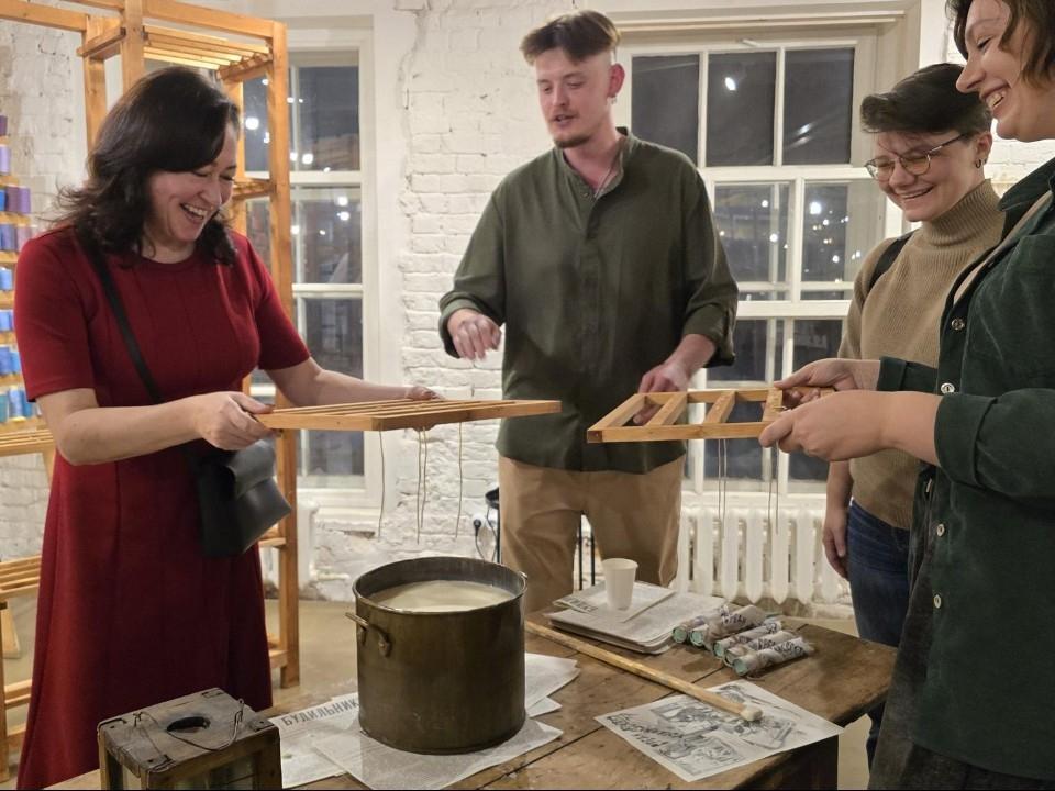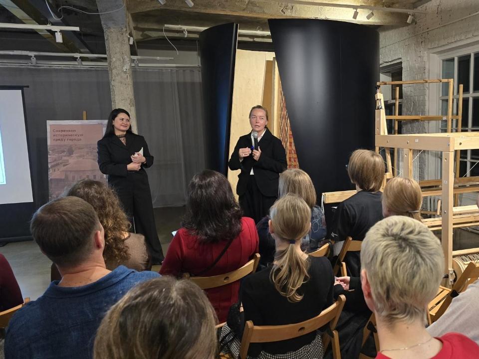 Гости узнали о трех основных направлениях, над которыми работает команда фонда — это восстановление свечного завода Сурановых, возрождение традиций местного шелкоткачества и проект «Коммунальная Одиссея: говорящая Коломна».
