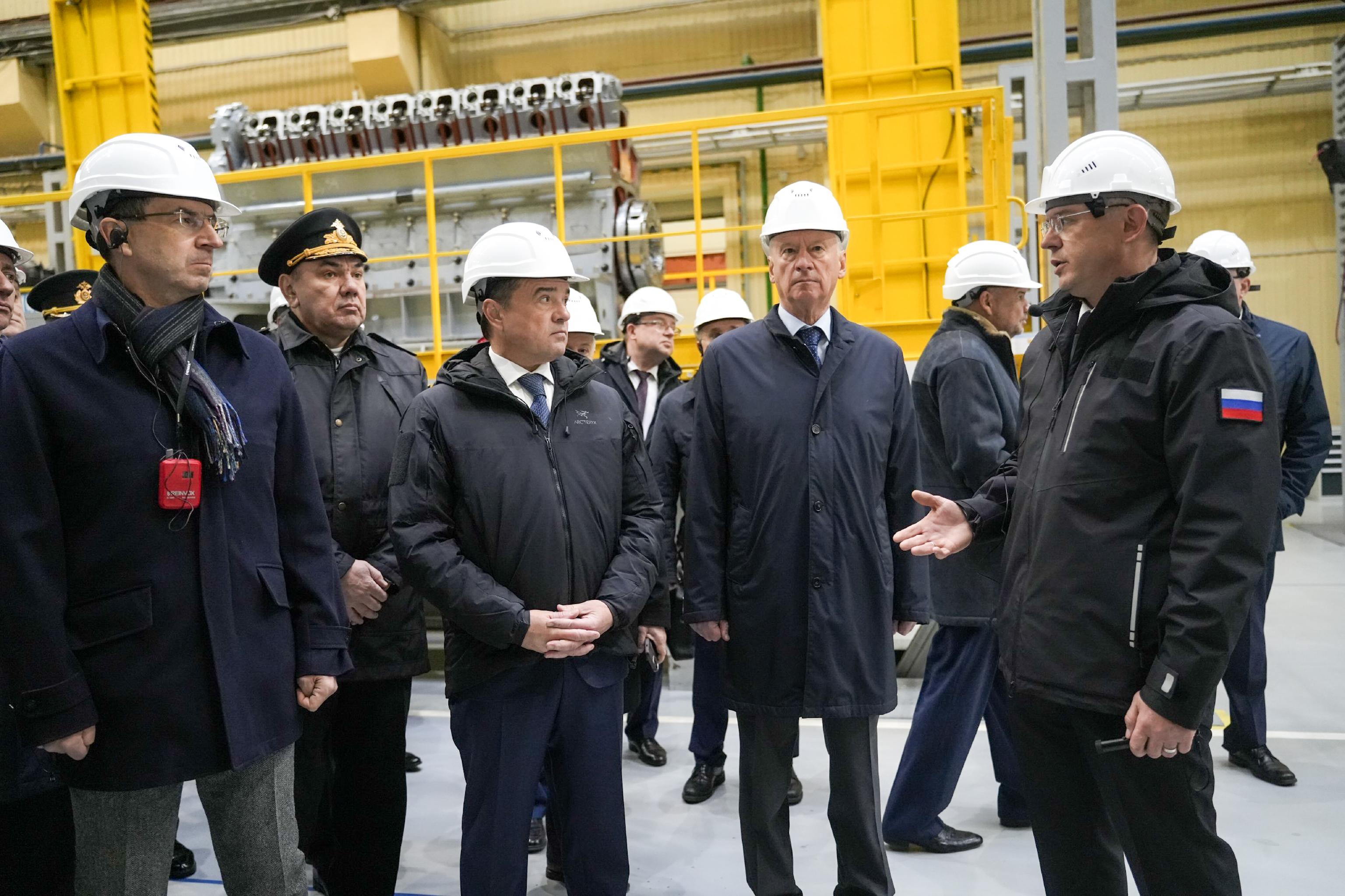 Андрей Воробьев, Николай Патрушев и Игорь Щёголев посетили механический цех и цех топливных систем завода, сборочное производство и современный центр приемо-сдаточных испытаний дизелей.