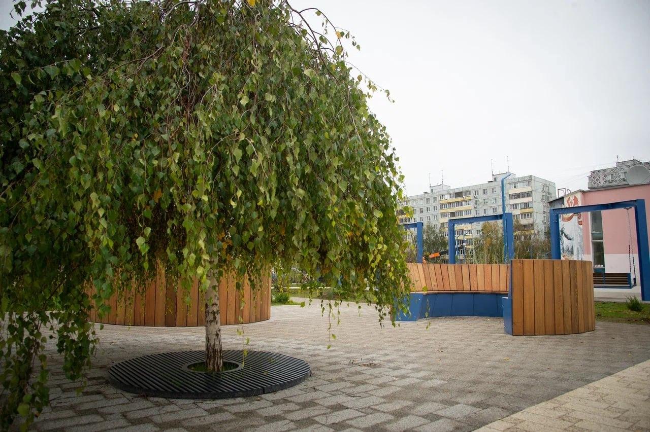 Особое внимание в сквере уделили озеленению. Ландшафтные дизайнеры сделали ставку на проверенную и живописную флору: традиционные спирею, казацкий можжевельник, иву и гортензию. Для создания структуры и зонирования пространства использовали кизильник блестящий, из которого со временем формируется аккуратная живая изгородь. Кульминацией садово-паркового ансамбля уже ближайшей весной станут высаженные здесь декоративные яблони Недзвецкого, цветущие яркими малиновыми цветами.