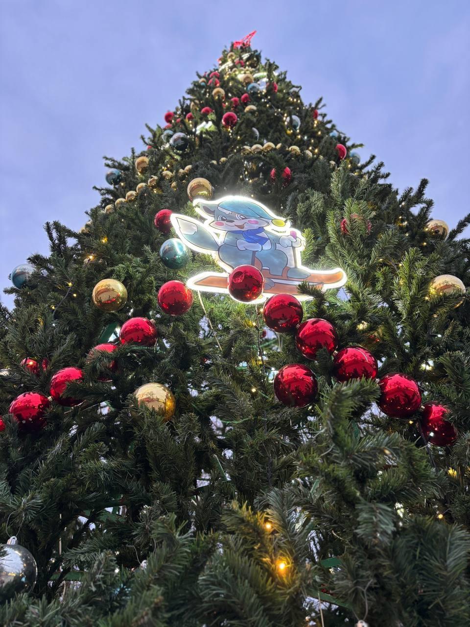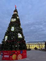 На площади Советской завершили установку главной 25-метровой ели. Вместе с этим ведется монтаж декоративных световых иллюминаций.