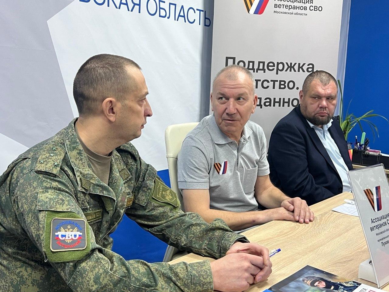 Руководитель коломенского отделения Ассоциации ветеранов СВО Подмосковья Алексей Каратеев встретился с коллегой - председателем луховицкого отделения Ассоциации Николаем Поляковым. На встрече присутствовали советник главы Городского округа Коломна Дмитрий Глодов и военнослужащие – участники специальной военной операции.