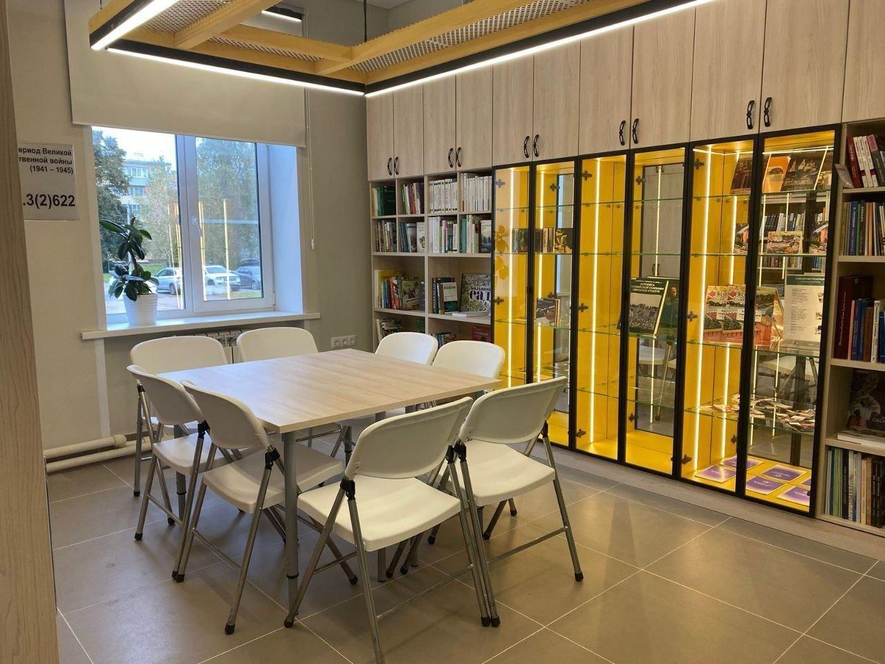 Обновленное пространство стало светлее, просторнее и современнее. Теперь здесь есть комфортные зоны для чтения с мягкими сиденьями и комфортным освещением, оборудованы места для работы с компьютером, детская зона, новые стеллажи для книг с тематическими секциями.