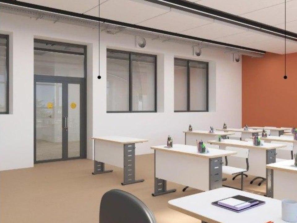 «Отличительной особенностью будущего комплекса является наличие внутреннего дворика, который создаст уютную атмосферу и возможность проводить общешкольные мероприятия в закрытом формате. Кроме того, на территории расположатся универсальное спортивное ядро, спортивные и детские площадки. В самом здании будут оборудованы два спортивных зала — большой и малый», — добавляет Владимир Рыбкин.
