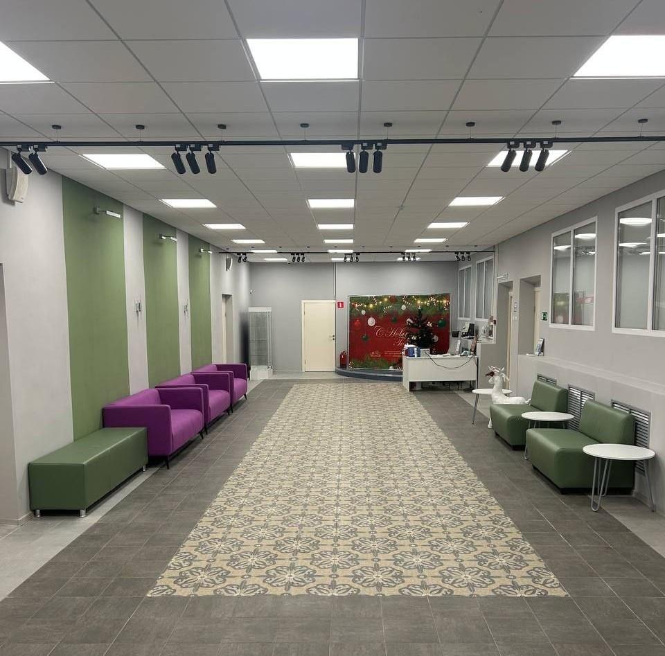 Изменения заметны уже с первого шага. Гостей встречает новая светлая и просторная раздевалка, а в фойе царит атмосфера домашнего уюта - стены окрашены в стильные тона, для комфортного ожидания установлены мягкие диваны.