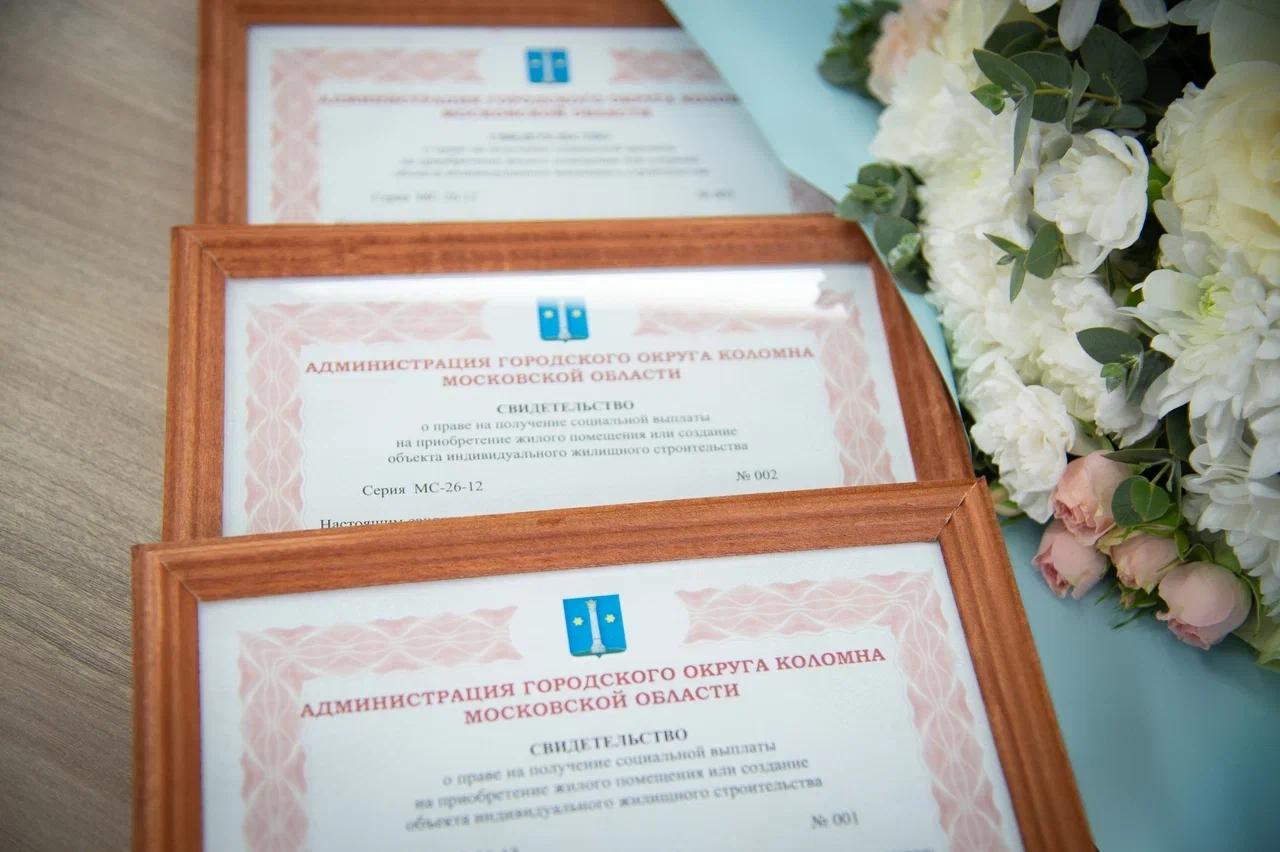 Три молодые коломенские семьи получили сертификаты на покупку жилья по государственной программе