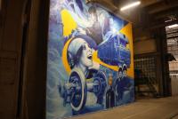 Арт-объект выполнен в оригинальном стиле: доминирующая сине-голубая гамма с яркими оранжевыми акцентами. Для сюжета художники вдохновлялись заводской романтикой и реальными образами предприятия. На стене изображены колесная пара, корпус современного тепловоза ТЭП70БС, портреты рабочих из прошлого, а также лица действующих сотрудниц цеха — сварщиц Елены Брагиной и Елены Богдановой.