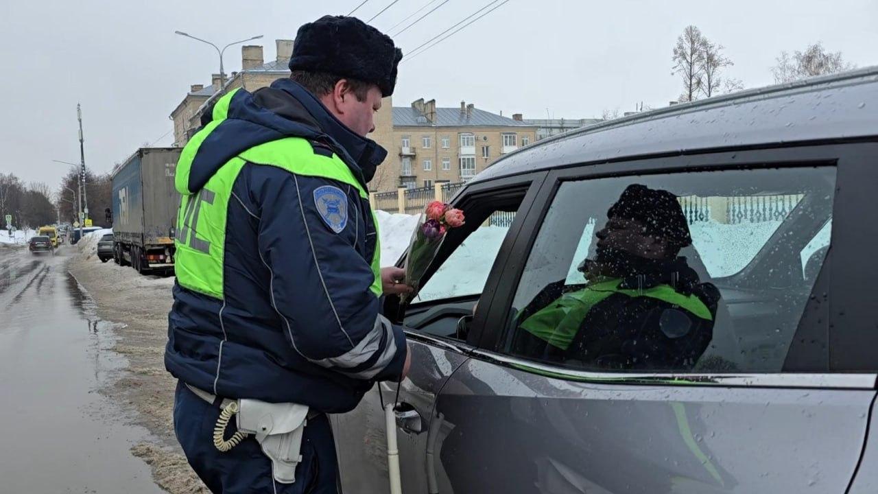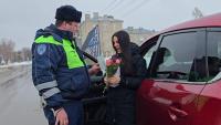 Цветы вместо протоколов: инспекторы ГАИ поздравили автоледи с наступающим праздником