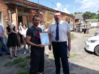 Андрей Голубев пообщался с коллективом предприятия, выслушал предложения, ответил на вопросы. Областной депутат вручил награды Мособлдумы за добросовестный труд сотрудникам, осуществляющим комплексную уборку территории, Биазиту Хайртдинову и Алексею Карасёву.