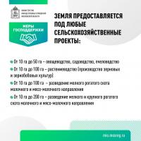Земля предоставляется под любые сельскохозяйственные проекты площадью: