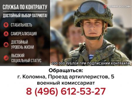 Для желающих в Городском округе Коломна заключить контракт о прохождении службы в Вооруженных Силах Российской Федерации работает официальный сай