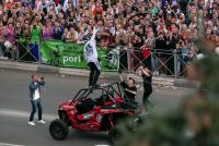 На площади Советской собрались сотни зрителей, чтобы увидеть адреналиновое шоу в исполнении лучших спортсменов нашей страны. Команда FMX13 не подвела: домашнее выступление, как всегда, было наполнено драйвом и эмоциями. Невероятные прыжки и полеты, рискованные трюки и эффектные акробатические элементы – нарушив все законы гравитации, райдеры подарили жителям и гостям настоящий праздник экстремальных видов спорта.