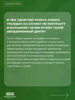 «Пункт отбора граждан на службу по контракту в Балашихе обеспечивает удобство и доступность для жителей. Объединённый центр также способствует эффективному отбору кандидатов, проведению медицинского осмотра и других процедур, необходимых для поступления на контрактную службу. Данный центр обеспечивает более комфортные условия для будущих военнослужащих и ускоряет процесс подготовки к службе», — сказал парламентарий.