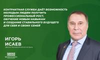 По словам Игоря Исаева, контрактная служба даёт возможность молодым людям получить профессиональный рост, обучение новым навыкам и создание стабильного будущего для себя и своих семей.