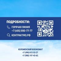 Для желающих вступить в ряды Вооружённых Сил России в Московской области продолжает работать уникальный для России Центр подготовки контрактников. Ответы на вопросы по военной службе можно получить по телефонам Коломенского военкомата: 8 (496) 612-53-27; +7 (980) 197-43-62. Всем контрактникам положены меры социальной поддержки – об этом можно подробно узнать на сайте контрактмо.рф.